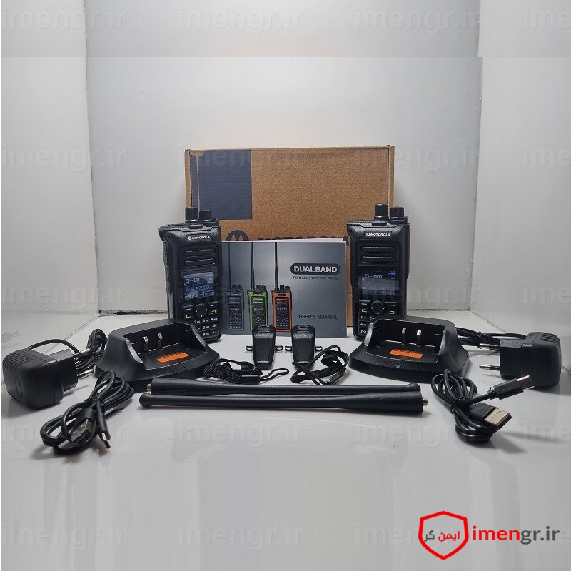 - اقلام همراه : دستگاه – آنتن – باتری – گیره کمری – بند – شارژر